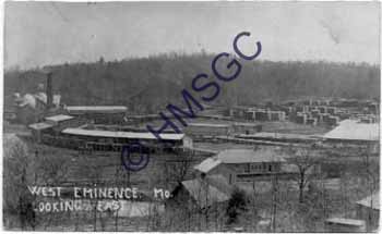 | Accession Number:1998-87 Accession Date: Condition:fair Location:archives,photo coll.,ozarks area,box 4,folder 19 Keywords:West Eminence, Missouri; Zoe Howard; Kansas City, Missouri, sawmill Area of Origin:West Eminence, MO Period:1912 Category:Documentary artifact Object:Postcard Maker:uk Description/History:Black and white postcard photo of the sawmill inWest Eminence, Missouri looking east. Buildings in middle of photo and hills and trees in background. Card is addressed to Miss Zoe Howard of Kansas City, Missouri. News-Leader Photo Information: |