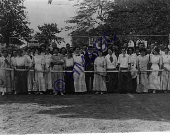 Accession Number:1999-197 Accession Date: Condition:fair Location:Archives,PhotoColl.,Recreation, Box 1, Folder 16 Keywords:Tennis Club, Tennis, Drury College,, sportswomen, sports. Area of Origin:Springfield, Mo. Period:ca 1905 Category:Documentary Artifact Object:Print, photographic Maker:uk Description/History:Black and white photo of members of the Drury College Tennis Club posing behind the net. News-Leader Photo Information: