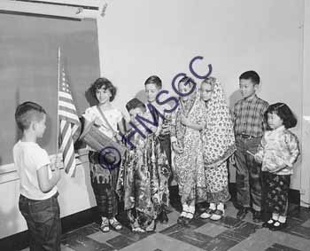Accession Number:1999-232.1 Accession Date: Condition:good Location:Springfield Public Schools, box 1, folder 1 Keywords:public scools, education, costume, children, United Nations, Fairview Area of Origin:Springfield, MO Period:ca. 1950 Category:documentary artifact Object:print, photographic Maker:Mignard Description/History:A black and white photo of United Nations Day at Fairview School. Children stand in costumes. News-Leader Photo Information: