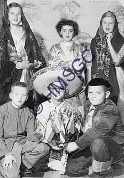 Accession Number:1999-232.3 Accession Date: Condition:good Location:Springfield Public Schools, box 1, folder 3 Keywords:public schools, education, costume, Fairview, United Nations, children Area of Origin:Springfield, MO Period:ca. 1950 Category:documentary artifact Object:print, photographic Maker: Description/History:A black and white photo of six children in costumes at United Nations Day at Fairview School. News-Leader Photo Information: