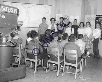 Accession Number:1999-232.4 Accession Date: Condition:good Location:Springfield Public Schools box 1, folder 4 Keywords:public schools, education, KTTS, classroom, children, students Area of Origin:Springfield, MO Period:ca. 1950 Category:documentary artifact Object:print, photographic Maker:John McGuire Description/History:A black and white photo of students in KTTS television classroom. News-Leader Photo Information: