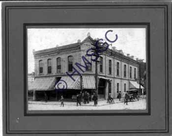 | Accession Number:1999-267 Accession Date: Condition:fair Location:archives,photo coll.,business,box 4,folder 33 Keywords:Farmers and Merchants Bank, Campbell Ave., Walnut St., Famous Grocery, streetlight, automobile, ice cream parlor,awnings Area of Origin:Springfield, Mo. Period:Ca 1920 Category:Documentary Artifact Object:Print, photographic Maker:UK Description/History:Black and white photo of the Farmers and Merchants Bank at the northeast corner of Campbell Avenue and Walnut Street. The Famous Grocery; 328 South Campbell Avenue, and the Famous Meat Market also occupy this two story brick building. At the top of this building is a plaque which reads " L. T. Watson 1885 " This would indicate the builder of this building. At the rear of the building is a sign that reads " Ice Cream and Candy " On the pole in front of the building is an electric street light. Also on the pole is a sign that reads " Campbell " There is a boy sitting on a safety bicycle near the stone curbing. He is wearing " Knickers " There are thirteen people in the picture. Of interest is a boy crossing the street carrying some books. News-Leader Photo Information: |