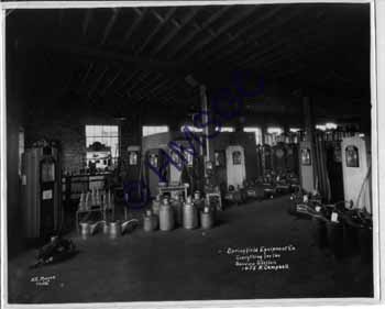 |  Accession Number:1999-338  Accession Date:  Condition:fair  Location:archives,photo coll.,business,box 5,folder 16  Keywords:Springfield Equipment Co., Campbell Ave.,service station, tools  Area of Origin:Springfield, Mo.  Period:ca 1930  Category:Documentary Artifact  Object:Print, photographic  Maker:Harry Morgan  Description/History:Black and white photograph of the Springfield Equipment Company;  1655 North Campbell Avenue.  " Everything for the Service Station"  The building is of brick construction with wooden posts.  Inside the building can be seen gasoline pumps, air compressors, gasoline cans, water cans and motor oil bottles.  News-Leader Photo Information: |