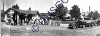 | Accession Number:1999-339 Accession Date: Condition:fair Location:archives,photo coll.,business,box 5,folder 17 Keywords:Charles and Frank Service Station, Cantrell Oil Co., trucks, Commercial St., Grant Ave.,Highway 160 Area of Origin:Springfield, Mo. Period:Ca1937 Category:Documentary Artifact Object:Print, photographic Maker:Harry Morgan Description/History:Black and white photograph of the Charles and Frank Service Station as well as the J.P. Cantrell Oil Company office; Grant Avenue and Commercial Street. There are seventeen men in the picture as well as one woman. Thirteen of the men are dressed in service station uniforms. There are six oil trucks and four passenger cars in the photograph. There are four Veedol gasoline pumps Along Grant Avenue is a Missouri U.S. 160 highway marker. There are two gasoline storage tanks. Along Grant ave. is an entrance to a subway. News-Leader Photo Information: |