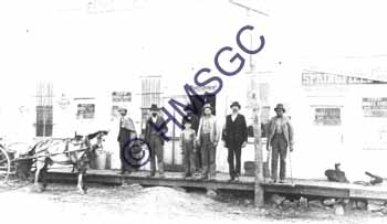 | Accession Number:1999-378 Accession Date: Condition:fair Location:Archives Photo Col., Business, Box 6, folder 16 Keywords:Farmers Cash Store, horse and buggy. Area of Origin:Springfield,MO Period:ca 1890 Category:Documentary Artifact Object:Print, photographic Maker:uk Description/History:Black and white photo of the Farmers Cash Store. Six men, one on crutches, and a youth are posed on the wooden sidewalk in front of the store. A horse and buggy is parked in front of the store. Possibly in Springfield or Ash Grove. News-Leader Photo Information: |