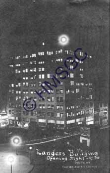| Accession Number:1999-397 Accession Date: Condition:fair Location:Archives Photo Col., Business, Box 6, folder 37 Keywords:Landers Building, public square, Nathan Clothing Area of Origin:Springfield, MO Period:1915 Category:Documentary Artifact Object:postcard Maker:Thieme Photo Supply Co. Description/History:Black and white postcard photo of the Landers Building, northeast corner of the Public Square. Photo is a night view of opening night of the building, April 17, 1915, 9:30 p. m. News-Leader Photo Information: |