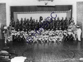 | Accession Number:2000-169-4 Accession Date: Condition:good Location:Archives, Black Hist. Coll., Box 2, Folder 9 Keywords:African American, Lincoln High School Marching Band, gymnasium, stage, uniforms, musical instruments, segregation Area of Origin:Springfield MO Period:ca 1950 Category:Documentary Artifact Object:Print, photographic Maker:uk Description/History:Black and white photoprint of the Lincoln High School Marching Band posing in uniform on and in front of a stage in the school gymnasium. Band director Gerald Brooks stands in front at the far right. News-Leader Photo Information: |