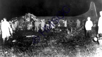 Accession Number:2000-17-11 Accession Date: Condition:good Location:archives, Betty Love Coll., box 1, folder 11 Keywords:American Airlines, airplane, plane crash, disaster, crash site, Love Area of Origin:Springfield, MO Period:1955 Category:Documentary Artifact Object:Print, photographic Maker:Betty Love Description/History:Black and white photo of an American Airlines airplane after its crash in a field, near Springfield. News-Leader Photo Information: