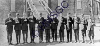 | Accession Number:2000-171-8 Accession Date: Condition:good Location:Archives, Black Hist. Coll., Box 2, Folder 27 Keywords:African American, Lincoln High School Boys' Glee Club, segregation Area of Origin:Springfield MO Period:1922 Category:Documentary Artifact Object:Print, photographic Maker:uk Description/History:Black and white photoprint of 12 boys standing in a row,the boys glee club, posing in front of the Old Lincoln School building. Names are (l-r): Otis Nuttall, Faygon Teverbaugh, Jewell Bagley, Christopher Tompkins, Obie Kimbrough, Edgar Smith, William Penn, Bonnie Herndon, Gordon Looney, David Denton, Oscar Greer, Dwight Nuttall.Print made from the 1922 Lincoln yearbook. News-Leader Photo Information: |