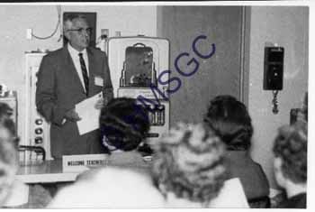Accession Number:2000-206-12 Accession Date: Condition:fair Location:Archives, Ward Coll., Box 1. Folder 12 Keywords:Pearson Ward, KTTS, broadcasting, teacher. Area of Origin:Springfield, Mo. Period:Ca 1960 Category:Documentary Artifact Object:Print, photographic Maker:UK Description/History:Black and white photo of G. Pearson Ward speaking to a group of teachers. News-Leader Photo Information: