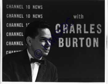 Black and white photo of KTTS nightime news editor Charles Burton. Channel 10 was the CBS affiliate.