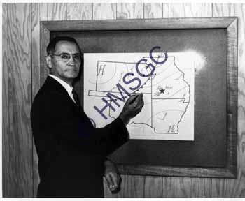 | Accession Number:2000-206-27 Accession Date: Condition:fair Location:Archives, Ward Coll., Box 1, Folder 27 Keywords:Dan McGuire, weather, KTTS, television. Area of Origin:Springfield, Mo. Period:Ca 1960 Category:Documentary Artifact Object:Print, photographic Maker:UK Description/History:Black and white photo of KTTS, Channel 10 weatherman Dan McGuire at a weather map. He had formerly been with the U.S. Weather Bureau as a meteorologist. News-Leader Photo Information: |