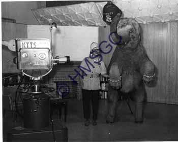 Accession Number:2000-206-29 Accession Date: Condition:fair Location:Archives, Ward Coll., Box 1, Folder 29 Keywords:Jack Elliott, KTTS, television, camera. Area of Origin:Springfield, Mo. Period:1965 Category:Documentary Artifact Object:Print, photographic Maker:UK Description/History:Black and white photo of broadcaster Jack Elliott with an elephant in the KTTS, Channel 10 studio. The program was called FYI. News-Leader Photo Information: