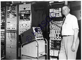 Accession Number:2000-206-57 Accession Date: Condition:fair Location:archives, Ward Coll., Box 1, Folder 57 Keywords:KTTS, broadcasting, television. Area of Origin:Springfield, Mo. Period:Ca 1955 Category:Documentary Artifact Object:Print, photographic Maker:uk Description/History:Black and white photo of an unidentified technician at KTTS, Channel 10, with a wall of broadcasting equipment. News-Leader Photo Information: