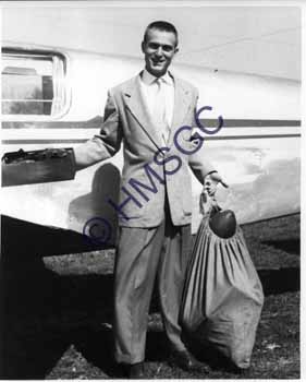 | Accession Number:2000-206-8 Accession Date: Condition:fair Location:Archives, Ward Coll., Box 1, Folder 8 Keywords:Bill Maynard, airplane, football, KTTS, broadcasting. Area of Origin:Springfield, Mo. Period:Ca 1960 Category:Documentary Artifact Object:Print, photographic Maker:Haden Photos. Description/History:Black and white photo of KTTS broadcaster Bill Maynard standing in front of a small airplane and holding a duffle bag with a football in it and a box holding a pair of football shoes. News-Leader Photo Information: |