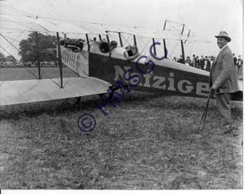 | Accession Number:2000-206-97 Accession Date: Condition:fair Location:archives, Ward Coll., box 2, folder 37 Keywords:Airplane, airfield, Nafziger, pilot, advertising Area of Origin:Springfield, MO Period:Ca 1920 Category:Documentary Artifact Object:Print, photographic Maker:Kucker Studio Description/History:Black and white photo of 3 men and an airplane in an unidentified flying field. The man in front (L) is a 92 year old man taking his first airplane ride. Behind him is pilot Lt. Ralph Snavely. Standing by the plane is an unidentified man. News-Leader Photo Information: |