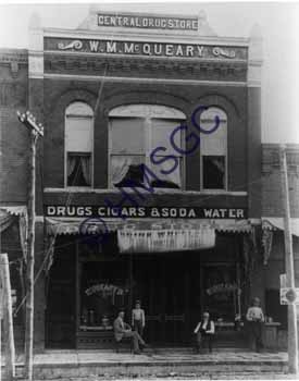 |  Accession Number:2000-216-1  Accession Date:  Condition:good  Location:archives, photo coll., business, b 7, f 44  Keywords:Ash Grove, McQueary, Central Drug Store, cigars  Area of Origin:Ash Grove, MO  Period:ca 1900  Category:Documentary Artifact  Object:Print, photographic  Maker:uk  Description/History:Black and white photo of the Central  Drug Store in Ash Grove, MO. Owned by William M. Mcqueary. 3 men and 1 boy in front, man seated with white hair and beard may be C.S. Likins.  News-Leader Photo Information: |