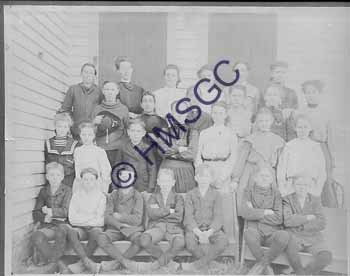 School Children outside Oak Grove School December 6, 1906. Teachers Cora Snodgrass and Stella ?. Grades 5, 6, 7, 8.