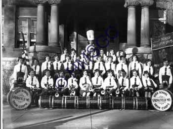 | Accession Number:2001-102 Accession Date: Condition:fair Location:archives, photo coll., schools, box 4, folder 25 Keywords:Springfield High School, entertainment, music, Kilties, R. Ritchie Robertson, drum, bagpipe, bugle Area of Origin:Springfield, MO Period:ca 1940 Category:Documentary Artifact Object:Print, photographic Maker:uk Description/History:Black and white photo of the Kilties Drum Corps posed on the south steps of Springfield High School on Central St. Scottish uniforms. News-Leader Photo Information: |