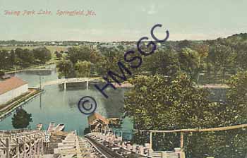 Accession Number:2001-289 Accession Date: Condition:good Location:archives, photo collection, parks,box 1, folder 13 Keywords:Doling Park, lake, chutes, postcard Area of Origin:Springfield, MO Period:ca 1908 Category:documentary artifact Object:print, postcard Maker: Description/History:A hand-tinted postcard photo of the lake at Doling Park. The view is taken from the top of the chutes. News-Leader Photo Information: