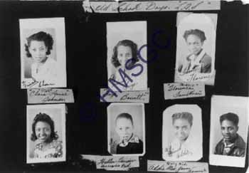 | Accession Number:2001-44-8 Accession Date: Condition:good Location:Archives, Black Hist. Coll., Box 4, Folder 7 Keywords:Lincoln School, segregation, African-American Area of Origin:Springfield MO Period:1947 Category:Documentary Artifact Object:Print, photographic Maker:uk Description/History:Black and white photo of a collection of photos of classmates at Lincoln School, 1947. Top Row (l-r): Clara Louise Johnson, Faye Barrett, Florence Faulkner. Bottom Row (l-r): unknown, Walter Hersier, Addie Mae Jensen, unknown. News-Leader Photo Information: |