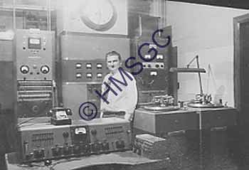 Accession Number:2001-51.10 Accession Date: Condition:fair Location:Ward, box 3, folder 1 Keywords:Ward, KTTS, television, radio, Chancellor, Control Room, Walnut, Hubbell, men Area of Origin:Springfield, MO Period:ca. 1960 Category:documentary artifact Object:print, photographic Maker:uk Description/History:A black and white photo of Control Room, Conference Building on Walnut St. Homer Hubbell (center). News-Leader Photo Information:
