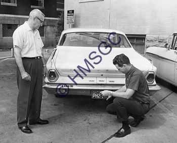 Accession Number:2001-51.103 Accession Date: Condition:good Location:Ward, box 3, folder 93 Keywords:Ward, Chancellor, KTTS, television, radio, Moore, car, men, contest Area of Origin:Springfield, MO Period:1965 Category:documentary artifact Object:print, photographic Maker:uk Description/History:A black and white photo of "Lucky License Winner" with Terry Moore, announcer. News-Leader Photo Information: