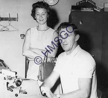 Accession Number:2001-51.111 Accession Date: Condition:good Location:Ward, box 3, folder 101 Keywords:Ward, Chancellor, KTTS, television, radio, men, Short Area of Origin:Springfield, MO Period:ca. 1960 Category:documentary artifact Object:print, photographic Maker:uk Description/History:A black and white photo of Sam Short (right) office manager. News-Leader Photo Information: