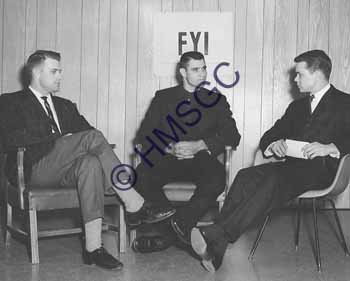 Accession Number:2001-51.195 Accession Date: Condition:good Location:Ward, box 4, folder 76 Keywords:Ward, KTTS, television, radio, Chancellor, Haden, Speak, FYI Area of Origin:Springfield, MO Period:ca. 1950 Category:documentary artifact Object:print, photographic Maker:Haden Photo Description/History:A black and white photo of Bob Speak in a three man interview on FYI. News-Leader Photo Information: