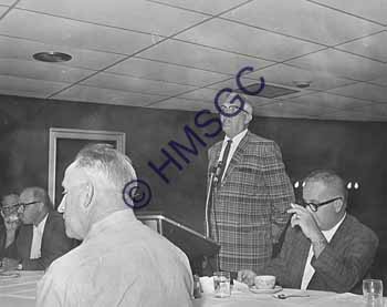 Accession Number:2001-51.202 Accession Date: Condition:good Location:Ward, box 4, folder 82 Keywords:Ward, KTTS, television, radio, Chancellor, men, Curry, Lloyd Area of Origin:Springfield, MO Period:ca. 1950 Category:documentary artifact Object:print, photographic Maker:uk Description/History:A black and white photo of Bill Curry, engineer, G. Pearson Ward, station manager, and Jack Lloyd, sales. News-Leader Photo Information: