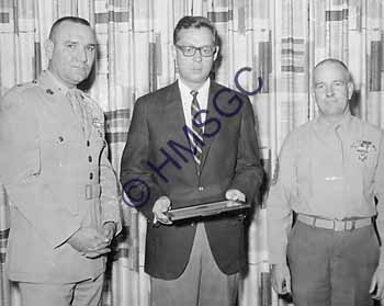 Accession Number:2001-51.209 Accession Date: Condition:good Location:Ward, box 4, folder 89 Keywords:Ward, KTTS, television, radio, Chancellor, men, military, uniform Area of Origin:Springfield, MO Period:ca. 1960 Category:documentary artifact Object:print, photographic Maker:uk Description/History:A black and white photo of three men, two are in miltiary uniform. News-Leader Photo Information: