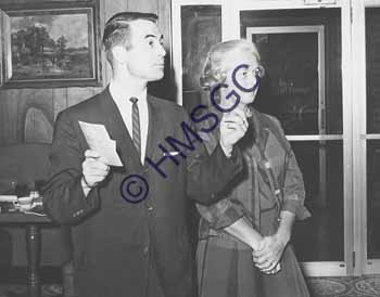 Accession Number:2001-51.211 Accession Date: Condition:good Location:Ward, box 4, folder 9 Keywords:Ward, KTTS, television, radio, Chancellor Area of Origin:Springfield, MO Period:ca. 1960 Category:documentary artifact Object:print, photographic Maker:uk Description/History:A black and white photo of a man and woman standing. News-Leader Photo Information:
