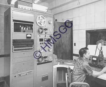 Accession Number:2001-51.219 Accession Date: Condition:good Location:Ward, box 4, folder 99 Keywords:Ward, KTTS, television, radio, Chancellor, men Area of Origin:Springfield, MO Period:ca. 1960 Category:documentary artifact Object:print, photographic Maker:uk Description/History:A black and white photo of a man in KTTS television booth. News-Leader Photo Information: