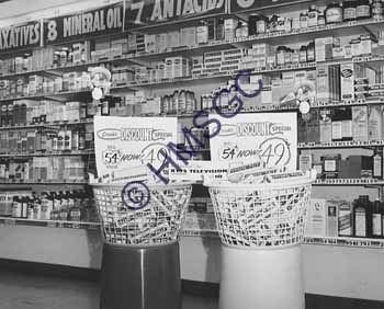 Accession Number:2001-51.254 Accession Date: Condition:good Location:Ward, box 5, folder 24 Keywords:KTTS, television, radio, Chancellor, Ward, Alka-Seltzer, advertisment Area of Origin:Springfield, MO Period:ca. 1965 Category:documentary artifact Object:print, photographic Maker:uk Description/History:A black and white photo of an Alka-Seltzer display and sale. News-Leader Photo Information: