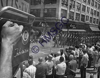 Accession Number:2001-51.264 Accession Date: Condition:good Location:Ward, box 5, folder 34 Keywords:KTTS, television, radio, Chancellor, Ward, military, parade Area of Origin:Springfield, MO Period:ca. 1960 Category:documentary artifact Object:print, photographic Maker:uk Description/History:A black and white photo of military parade. News-Leader Photo Information: