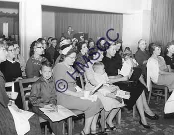 Accession Number:2001-51.276 Accession Date: Condition:good Location:Ward, box 5, folder 56 Keywords:Ward, Chancellor, KTTS, television, radio, mothers, women, children, Haden Area of Origin:Springfield, MO Period:ca. 1960 Category:documentary artifact Object:print, photographic Maker:Haden Description/History:A black and white photo of a crowd of women and children. News-Leader Photo Information: