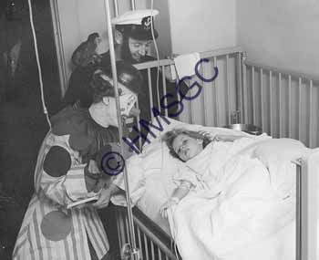 |  Accession Number:2001-51.284  Accession Date:  Condition:good  Location:Ward, box 5, folder 64  Keywords:Ward, Chancellor, KTTS, television, radio, Haden, Baptist Hospital, transfusion, sickness, illness, children, Captian Briny, medicine, clown, monkey  Area of Origin:Springfield, MO  Period:ca. 1960  Category:documentary artifact  Object:print, photographic  Maker:Haden  Description/History:A black and white photo of a young girl receiving a blood transfusion or an IV with Captain Briny and clown at her side.  News-Leader Photo Information: |