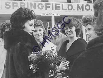Accession Number:2001-51.296 Accession Date: Condition:good Location:Ward, box 5, folder 76 Keywords:Ward, Chancellor, KTTS, television, radio, roses, flowers, women Area of Origin:Springfield, MO Period:ca. 1960 Category:documentary artifact Object:print, photographic Maker:uk Description/History:A black and white photo of several women. One holds a bonquet of roses. News-Leader Photo Information:
