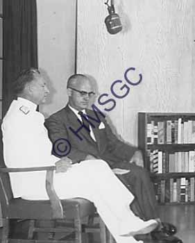 Accession Number:2001-51.304 Accession Date: Condition:good Location:Ward, box 5, folder 84 Keywords:Ward, Chancellor, KTTS, television, radio, men Area of Origin:Springfield, MO Period:ca. 1960 Category:documentary artifact Object:print, photographic Maker:uk Description/History:A black and white photo of two seated men. News-Leader Photo Information: