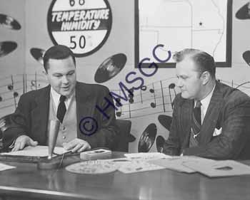 Accession Number:2001-51.314 Accession Date: Condition:good Location:Ward, box 5, folder 94 Keywords:Ward, Chancellor, KTTS, television, radio, men Area of Origin:Springfield, MO Period:ca. 1960 Category:documentary artifact Object:print, photographic Maker:uk Description/History:A black and white photo of two men seated. News-Leader Photo Information: