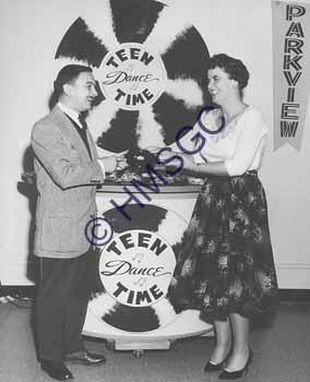 Accession Number:2001-51.318 Accession Date: Condition:good Location:Ward, box 5, folder 98 Keywords:Ward, Chancellor, KTTS, television, radio, Teen Dance Time, records Area of Origin:Springfield, MO Period:ca. 1960 Category:documentary artifact Object:print, photographic Maker:uk Description/History:A black and white photo of a man and woman promoting Teen Dance Time. News-Leader Photo Information: