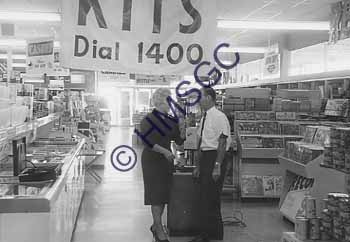 Accession Number:2001-51.333 Accession Date: Condition:good Location:Ward, box 6, folder 3 Keywords:1960, Ward, Chancellor, KTTS, television, radio, store, grocery, interview Area of Origin:Springfield, MO Period:ca. 1960 Category:documentary artifact Object:print, photographic Maker:uk Description/History:A black and white photo of 1400 KTTS interview at a grocery store between a man and a woman. News-Leader Photo Information: