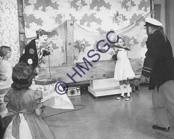 Accession Number:2001-51.343 Accession Date: Condition:good Location:Ward, box 6, folder 13 Keywords:1960, Ward, Chancellor, KTTS, television, radio, play, children, Captain Briny, clown Area of Origin:Springfield, MO Period:ca.1960 Category:documentary artifact Object:print, photographic Maker:uk Description/History:A black and white photo of children playing with Captain Briny and clown. News-Leader Photo Information: