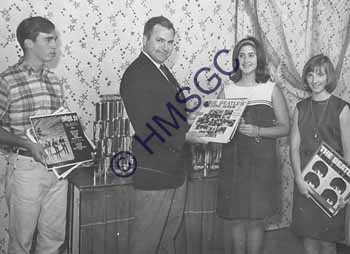 Accession Number:2001-51.351 Accession Date: Condition:good Location:Ward, box 6, folder 21 Keywords:1960, Ward, Chancellor, KTTS television, radio, teenagers, albums, records, Beatles, children Area of Origin:Springfield, MO Period:ca. 1960 Category:documentary artifact Object:print, photographic Maker:uk Description/History:A black and white photo of teenagers holding Beatles albums. KTTS man stands center. News-Leader Photo Information:
