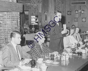 Accession Number:2001-51.358 Accession Date: Condition:good Location:Ward, box 6, folder 28 Keywords:1960, Ward, Chancellor, KTTS, television, radio, people Area of Origin:Springfield, MO Period:ca. 1960 Category:documentary artifact Object:print, photographic Maker:uk Description/History:A black and white photo of people dining. One man stands holding a brochure that reads: Buyer's Guide. News-Leader Photo Information: