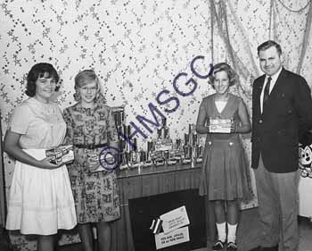 Accession Number:2001-51.364 Accession Date: Condition:good Location:Ward, box 6, folder 34 Keywords:1960, Ward, Chancellor, KTTS, television,r adio, Minute Maid, sponsor, girls, juice Area of Origin:Springfield, MO Period:ca. 1960 Category:documentary artifact Object:print, photographic Maker:uk Description/History:A black and white photo of three girls and KTTS man near Minute Maid display. News-Leader Photo Information: