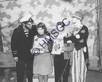 Accession Number:2001-51.368 Accession Date: Condition:good Location:Ward, box 6, folder 38 Keywords:1960, Ward, Chancellor, KTTS, television, radio, children, clown, Captain Briny, monkey, prizes Area of Origin:Springfield, MO Period:ca. 1960 Category:documentary artifact Object:print, photographic Maker:uk Description/History:A black and white photo of Captain Briny, clown and children with prizes. News-Leader Photo Information: