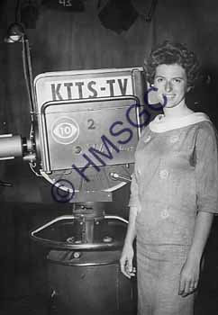 Accession Number:2001-51.37 Accession Date: Condition:good Location:Ward, box 3, folder 28 Keywords:Ward, KTTS, radio, television, Chancellor, Hall, women, camera Area of Origin:Springfield, MO Period:ca. 1960 Category:documentary artifact Object:print, photographic Maker:uk Description/History:A black and white photo of Ann Hall standing next to KTTS-TV camera. News-Leader Photo Information: