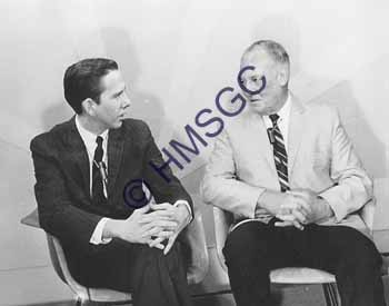 Accession Number:2001-51.382 Accession Date: Condition:good Location:Ward, box 6, folder 52 Keywords:1960, Ward, Chancellor, KTTS, television, radio, men, interview Area of Origin:Springfield, MO Period:ca. 1960 Category:documentary artifact Object:print, photographic Maker:uk Description/History:A black and white photo of two men seated for an interview. News-Leader Photo Information: