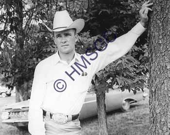 Accession Number:2001-51.383 Accession Date: Condition:good Location:Ward, box 6, folder 53 Keywords:1960, Ward, Chancellor, KTTS, television, radio, cowboy, rodeo, men, hat, Maham, belt buckle, bull riding Area of Origin:Springfield, MO Period:1965 Category:documentary artifact Object:print, photographic Maker:uk Description/History:A black and white photo of Larry Maham, World Champion Bull Rider. News-Leader Photo Information: